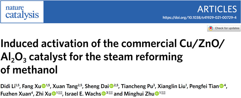 【创新前沿】《自然-催化》报道我校甲醇水蒸气重整制氢新进展