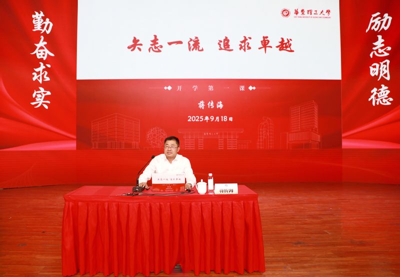 赓续抗战精神,谱写青春华章。9月18日下午,校党委书记蒋传海在奉贤校区以“矢志一流 追求卓越”为题,为全体2025级本科新生讲授“开学第一课”,引领青年学子坚定理想信念、厚植家国情怀、勇担时代使命。校党委副书记沈海涛主持“开学第一课”。