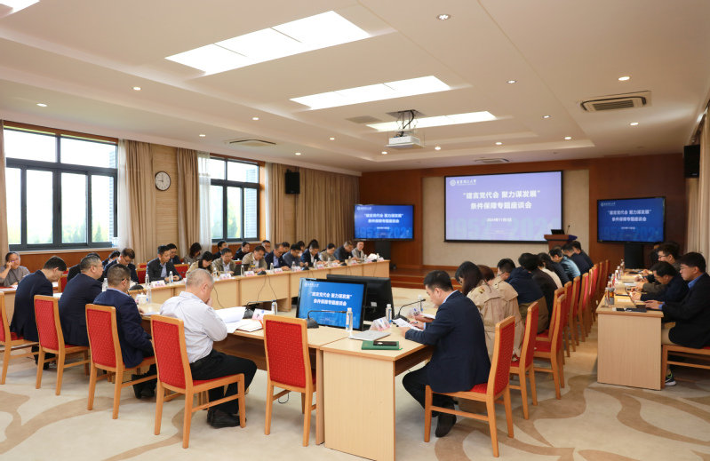 11月5日,“建言党代会 聚力谋发展”系列专题座谈会第六场——条件保障专题座谈会在和平楼第二会议室召开。会议聚焦学校条件保障工作,广泛征求各方意见建议,为党代会在制定条件保障相关战略和举措时提供参考。校党委书记蒋传海出席会议并讲话,副校长李涛、李春忠出席会议,校党委副书记宋来主持会议。